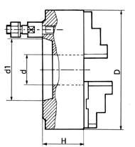 | Bauart: Drehfutter mit Kurzkegelaufnahme nach DIN 55027 (Cushman). Das Drehfutter gewährleistet eine gleichmäßige Spannkraft durch zentrisch spannende Backen sowie eine hohe Rundlaufgenauigkeit, z.B. bei Durchmesser 250 mm von 0,04 mm, also besser als DIN fordert (0,06 mm). Ersatzbacken siehe: GB-Grundbacken, WAB-Weiche Aufsatzbacken, MB-Monoblockbacken, HAB-Harte Aufsatzbacken, DB-Drehbacken, BB-Bohrbacken. * Innenkegelbefestigung Material: Der Drehfutterkörper ist aus gesenkgeschmiedetem Stahl. Der Spiralring und die Backen sind durch Aufkohlen gehärtet, dann geschliffen. Das Futter und der Spiralring sind gewuchtet. Alle Funktionsflanken sind geschliffen. Lieferumfang: 1 Satz Bohrbacken, 1 Satz Drehbacken, 1 Spannschlüssel und Befestigungsschrauben. |
