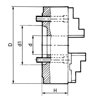 Lieferumfang: 1 Satz Bohrbacken, 1 Satz Drehbacken, 1 Spannschlüssel und Befestigungsschrauben. Auf Anfrage erhalten Sie diese Drehfutter auch mit geteilten Backen. * Innenkegelbefestigung